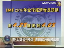 2010-07-08 22:32:18總部在華盛頓的國際貨幣基金組織(IMF)星期四發佈最新全球經濟展望報告,上調了對2010年全球經濟增長的預期。 世界經濟將增長由先前的4.2%調高到4.6%,但該機構同時警告,歐洲主權債務風險升高,可能拖纍全球經濟。