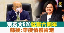 蔡英文520就職六周年前 蘇揆:守疫情獲肯定