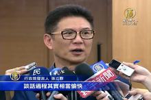 2016-04-19 20:06:10原本傳出準閣揆林全今天要公布第四波人事,不過並沒有發生,倒是由即將接任行政院發言人的童振源,今天(19日)前往行政院,拜會現任發言人孫立群,請益經驗。