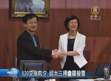2016-05-09 20:11:58再來看到,離520政權交接,越來越近,準法務部長邱太三今天(9)前往法務部,拜會部長羅瑩雪,就520交接工作,聽取簡報。對於台灣人涉入境外電信詐騙遭遣返中國,邱太三認為兩岸應該建立SOP,作為日後類似案情的參照,陸方沒有必要橫生枝節與干擾。
