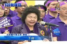 2012-05-20 21:37:31民進黨紫怒圍馬的活動,在中臺灣的民眾熱烈參加,在台中市,民眾穿上紫色運動上衣,站在大型海報上,排出「怒」字圖形,希望在台北就職的馬英九總統,可以聽得到民眾的心聲。