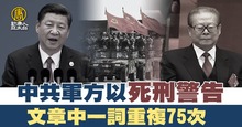 中共軍方以死刑警告 文章中一詞重複75次