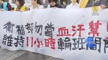 2018-01-23 21:36:18勞基法修法後,衛福部本來強調「醫護人員」排班仍然要以間隔「11小時」為原則,但上週四(1月18日),突然發公文給各醫事公會,要討論回歸勞基法的8小時間隔,加開例外條款,讓護理人員很不滿,要求衛福部至少得維持現狀,今天(1月23日)也聚集衛福部大門口,要求衛福部不要替企業開後門。