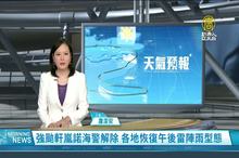 2022-09-05 07:01:24歡迎您收看9月5日的早安新唐人,我是唐潔安,先來帶您關心天氣。第11號颱風軒嵐諾逐漸向北遠離台灣,對台灣近海威脅已解除,昨晚8點半氣象局解除軒嵐諾的海上颱風警報。氣象局表示,周一西南風將為中南部帶來降雨,各地將恢復午後雷陣雨型態。帶您一起來看到國際媒體重要訊息。