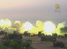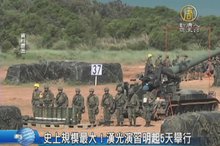 2015-09-10 20:03:21國軍漢光演習實兵演練進入第四天,今天上午,在新竹坑子口靶場,實施反舟波射擊操演,總統馬英九到現場校閱,而中共卻宣布,從明天開始,要在台灣海峽實施一連三天的實彈火砲射擊軍演。