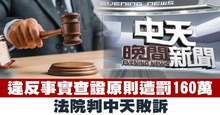 違反事實查證原則遭罰160萬 法院判中天敗訴