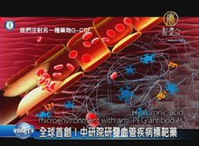 2016-11-18 20:44:05中研院生醫研究,再創全球紀錄,讓未來心血管疾病再生露出曙光!生醫所研究員謝清河、羅傅倫,結合治療性水膠與抗體的注射,可以精準將藥物送到患部位置,號稱能幫助動脈修補。現階段研究重點糖尿病、高血壓等下肢缺血的病人,未來,甚至可望進一步改善心肌梗塞、中風患者病情。