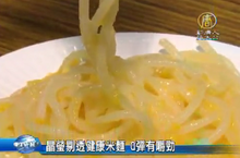 2014-08-15 21:56:04麵條一定是麵粉做的嗎?這可不一定,有廠商就將米製成了麵條,吃起來綿密又紮實,熱量還只是普通麵條的一半,老闆說,最初會想製作米麵條,就是基於健康理念,米麵條蛋白質含量高,有助於腸胃消化,無麩質也不容易引起過敏。