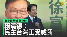 2023-08-29 19:08:11關注2024總統大選,今天(29日)上午,民進黨總統參選人、副總統賴清德到屏東恆春為屏南立委參選人徐富癸站台。賴清德指出,台灣正面對區域霸權威脅,因此應該支持對民主自由有堅持的人選,讓國會席次過半。