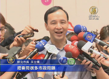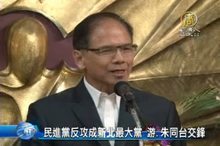 2015-01-27 12:55:50九合一大選後,新北市議會泛綠過半,稍早,民進黨團新任議會總召交接,小輸兩萬多票的新北市長落選人游錫?,也與朱立倫,同台交鋒。