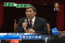 2012-12-14 22:24:31民進黨團今天召開黨團大會,達成支持行政版本的共識,不過強調要從101年度開始法制化,對於考試院長關中表示,退休公務人員18%的制度,應該採漸進式改革,綠營立委稱讚關中比陳沖還要更有GUTS,但希望關中要趕緊拍板定案,不要只是虛晃一招。