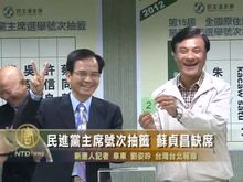 2012-04-19 23:18:00民進黨19日進行黨主席候選人號次抽籤。 ,民進黨主席號次抽籤 蘇貞昌缺席