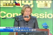 2012-05-22 21:20:53為了歡迎美國眾議院代表團,民進黨中常委蔡同榮昨天(21日)晚間號召獨派和綠營人士,為代表團舉行歡迎晚宴,也答謝團長,眾院外交委員會主席羅絲蕾緹南。羅絲蕾緹南致詞時特別強調,台灣是東亞的民主燈塔,美國不會放任中國孤立台灣。