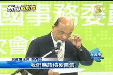 2012-11-21 21:15:07鏡頭轉回台灣。民進黨主席蘇貞昌今天宣布成立中國事務委員會,不過,推翻了原先外界揣測的,由訪問中國回台的前主席謝長廷主持。而是由蘇貞昌親自擔任召集人。