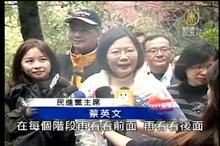 2011-02-12 22:03:30民進黨主席蔡英文今天率領黨公職走春,不過黨內天王蘇貞昌、謝長廷都缺席,只有游錫堃陪著蔡英文爬完兩千多階的硬漢嶺,蔡英文說,這代表新的一年,民進黨面對艱困挑戰,會挑重擔當硬漢,至於他自己會不會挑起2012重擔?蔡英文說,關心台灣的人,都應該要有心理準備。