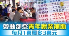 勞動部祭青年就業補助 每月1萬最多3萬元
