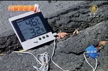 連日來的酷熱高溫,不只民眾熱翻天,就連柏油路面也受不了,台北101大樓前的公車專用道,才剛鋪好的柏油路,竟然被高溫曝曬的軟化,不堪公車來回碾壓,像瑞士捲一樣隆起捲曲,上下公車的乘客一不小心,就會被絆倒。