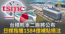 台積熊本二廠將公布 日媒指獲1584億補貼挹注