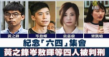 紀念「六四」集會 黃之鋒岑敖暉等四人被判刑