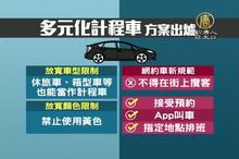 2016-10-25 21:00:40交通部推動「多元化計程車方案」上路,今天開始,國內業者就能準備申請並規劃企劃書提案,而為了跟一般小黃有所區隔,車身不限顏色、休旅車也能當計程車,價格則「回歸市場機制」,除設定上下限,其他開放業者自訂。