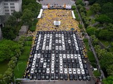 反對交通部修法 網路叫車平台自救會凱道排字抗議