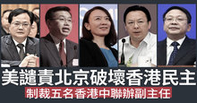 美譴責北京破壞香港民主 制裁五名香港中聯辦副主任