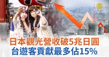 日本觀光營收破5兆日圓 台遊客貢獻最多佔15%