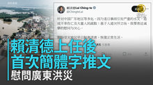 賴清德上任後首次簡體字推文 慰問廣東洪災