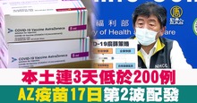 本土連3天低於200例 AZ疫苗17日第2波配發