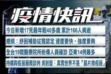 2021-06-03 20:11:06來看到今天的疫情快訊:今日新增17死,最年輕只有40多歲,共累計166人病逝。總統今天表示:紓困補助從寬認定,速度要快、強度要夠。全台19間醫療院所紛傳人員確診,亞東醫院14例最多。台灣持續與疫苗廠商談判,外交部長吳釗燮說︰真實世界不是「晶片換疫苗」。