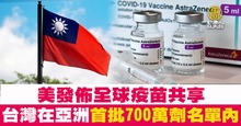 美發佈全球疫苗共享 台灣在亞洲首批700萬劑名單內