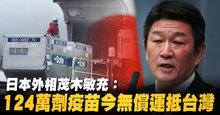 日本外相茂木敏充:124萬劑疫苗今無償運抵台灣