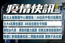 2021-06-02 12:40:16新聞開始先關心台灣本土疫情動態,新北土城養護中心爆感染!34住民中有20名陽性。文大4名學生確診。345名住宿生今天快篩。德國駐台代表指出:德國政府盡力協調,但無法掌控疫苗簽約。前副總統陳建仁參與國產疫苗二期臨床試驗,表示沒有不良反應,執行嚴謹。