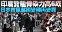 印度變種傳染力高6成 日本首見英國變種再變異