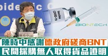 陳時中謝德政府磋商BNT 民間採購無人取得貨品證明
