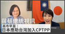 2021-10-05 18:45:09日本執政黨自民黨國會議員團體「紡織羈絆之會」今天(5日)邀請駐日代表謝長廷出席會議,謝長廷在會中呼籲日本支持台灣加入CPTPP,團體代表高市早苗回應,希望幫助台灣加入。
