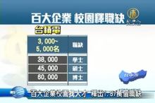 2015-03-12 20:40:28那麼台中的逢甲大學,也在這兩天舉行校園徵才博覽會,共有123個攤位,第一天就吸引8千學生入場,今年包括台積電、信義房屋、王品及上銀等企業龍頭,共釋出1.87萬個工作機會,規模創歷年新高。