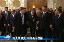 2015-02-13 12:44:06烏克蘭、俄國、法國與德國,昨天在白俄羅斯明斯克展開的48小時會談,各方達成停火協議,將在15日生效。烏克蘭政府與東部親俄叛軍必須將重兵器撤出,創造安全區。對此,美國表示歡迎,並透露,目前尚未決定撤回對俄國的制裁措施。 而世界銀行說,將會提供飽受戰火蹂躪的烏克蘭,20億美元金融援助。