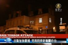 2015-01-09 07:02:07早安新唐人,馬上帶您看到,法國媒體《查理周報》巴黎辦公室,前天遭3名恐怖份子攻擊,2人持步槍,血洗報社造成12死。目前,1嫌犯投案,2人在逃,警方加緊圍捕,當局加派800軍力駐守巴黎各媒體總部、交通要道、重要建築;而各地則是在昨天傳出清真寺遭攻擊、警察遭射殺等事件,全法國瀰漫緊張氣氛。梵蒂岡發表聲明,強調沒有新聞自由的世界,是恐怖的世界。