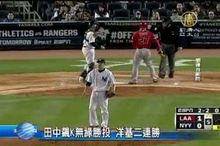 2014-04-28 21:38:59帶您看到美國職棒大聯盟,洋基與天使三連戰第三場的賽況。洋基先發投手田中將大主投六又三分之一局,送出11次三振,責失2分。田中退場後,洋基以全壘打追平比分,再靠著暴投跑回致勝分,終場以3比2擊敗天使。