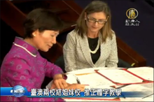 2014-08-17 21:20:32隨著中文在國際社會的升溫,越來越多的國外學生選擇中文作為第二語言主修。然而,在澳洲所有學校裡教的都是簡體字,很多家長及學生都希望可以學習到正統的中文正體字,澳洲昆士蘭的克蘭威爾學院與高雄女中正式結為姐妹校,未來兩地將進行教學交流,也讓學習正體中文的願望終於實現。