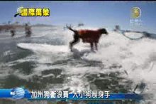 2013-10-03 21:37:37美國加州亨廷頓海灘今(26)日舉行一場「狗狗衝浪大賽」,衝浪板上站著是被主人帶來的小狗。許多狗兒衝起浪來,是氣定神閒,架式不輸衝浪好手。