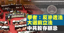 2019-12-31 21:16:00中華民國立法院,今天三讀通過反滲透法。戰略學者分析,國際局勢、美中台關係變化,這是台灣必須面對立法的時機;如果等到選舉後,中共打壓將更沒有顧忌,立法面臨更多的變數。