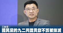 2020-05-15 20:43:41國民黨主席江啟臣15日表示,北京應正視中華民國的存在,放棄武力犯台的威脅,正視「一國兩制」在台灣毫無市場的事實,國民黨曾經在九二共識一中各表的基礎上,簽下了一系列對台灣有益的協議,這些貢獻不該被抹滅。