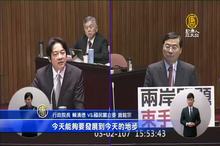 2018-03-02 21:21:38再來看到,蔡政府上任後兩岸交流仍處僵局。行政院長賴清德今天(2日)回應質詢時表示,中共從未對台灣釋出善意,應檢討為何處心積慮封鎖台灣。他對多個兩岸議題大方快語回應,並首度鬆口,2018不選雙北市長。