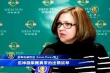 2015-03-06 12:52:29鏡頭轉到美國威斯康辛州的 阿普爾頓市,一位音樂系教授在看了美國神韻巡迴藝術團的演出後驚喜的表示,她感謝神韻帶來東方文明瑰寶。