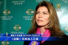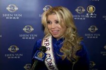 2015-02-12 21:42:57康州2015年國際選美活動中,因多才多藝獲選「康州夫人」 的葆拉.梅麗,日前有機會一償心願,觀賞神韻,她說,神韻演出裡,善的力量,最令她感動。