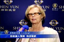 2015-02-11 21:36:33好萊塢資深影視劇本指導Eva Zelder,2月8日晚在加州長灘市觀看了美國神韻世界藝術團在當地的最後一場演出。她非常喜歡神韻的服裝、天幕和音樂,並表示整場演出帶給她無比的享受。