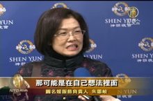 2013-02-22 21:24:40神韻晚會呈現的豐富色彩、藝術家們的曼妙舞姿,讓兩位從事服裝業的觀眾大為讚賞,從事服飾業的朱女士觀賞美國神韻巡迴藝術團在台北國父紀念館的第二場演出,她形容,看神韻彷彿享受了古代帝王才有的視覺饗宴,也像是到天界雲遊了一回。