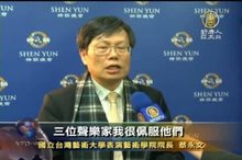 2013-02-25 21:32:15神韻在全球的演出,吸引各界專業人士到場觀賞,接下來帶您看到,台灣藝術大學表演藝術學院院長蔡永文,同時也是一位男高音,在觀看台北國父紀念館的神韻演出後,對神韻聲樂家們專業的演出,感到非常佩服。